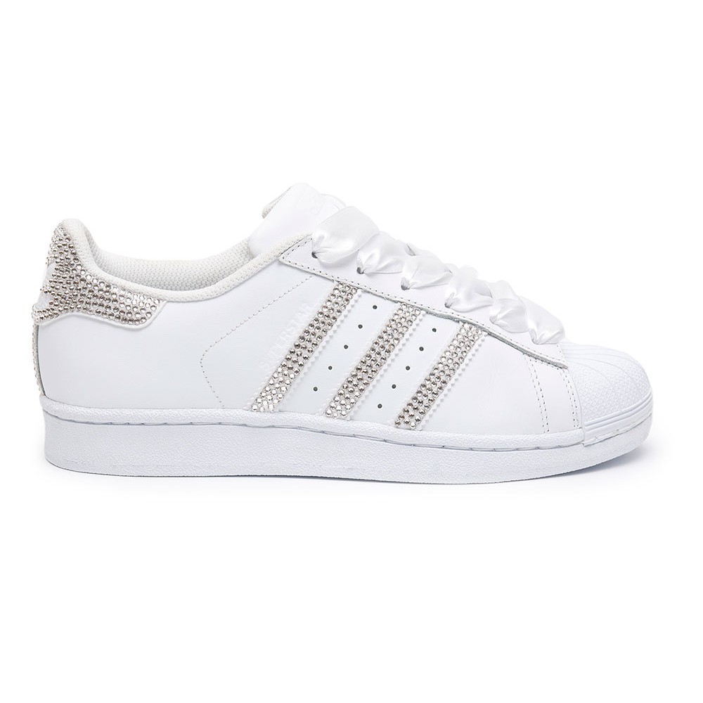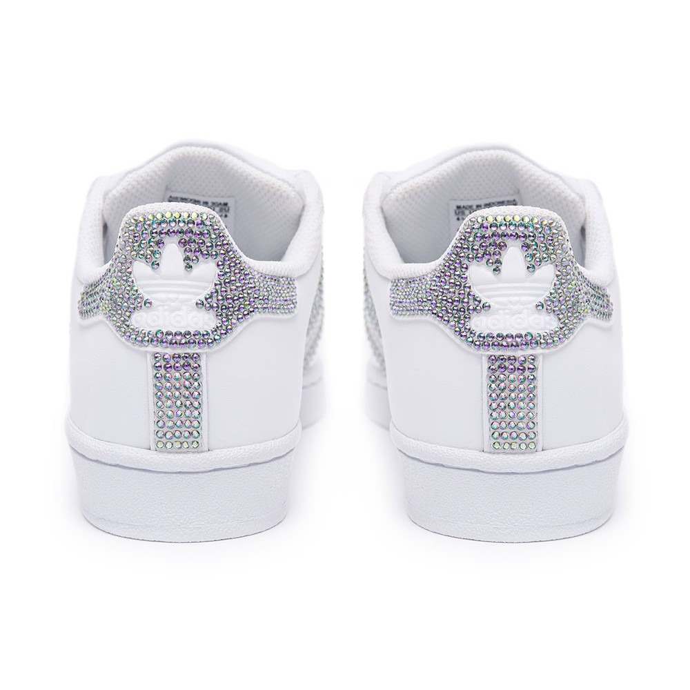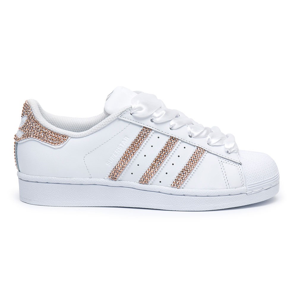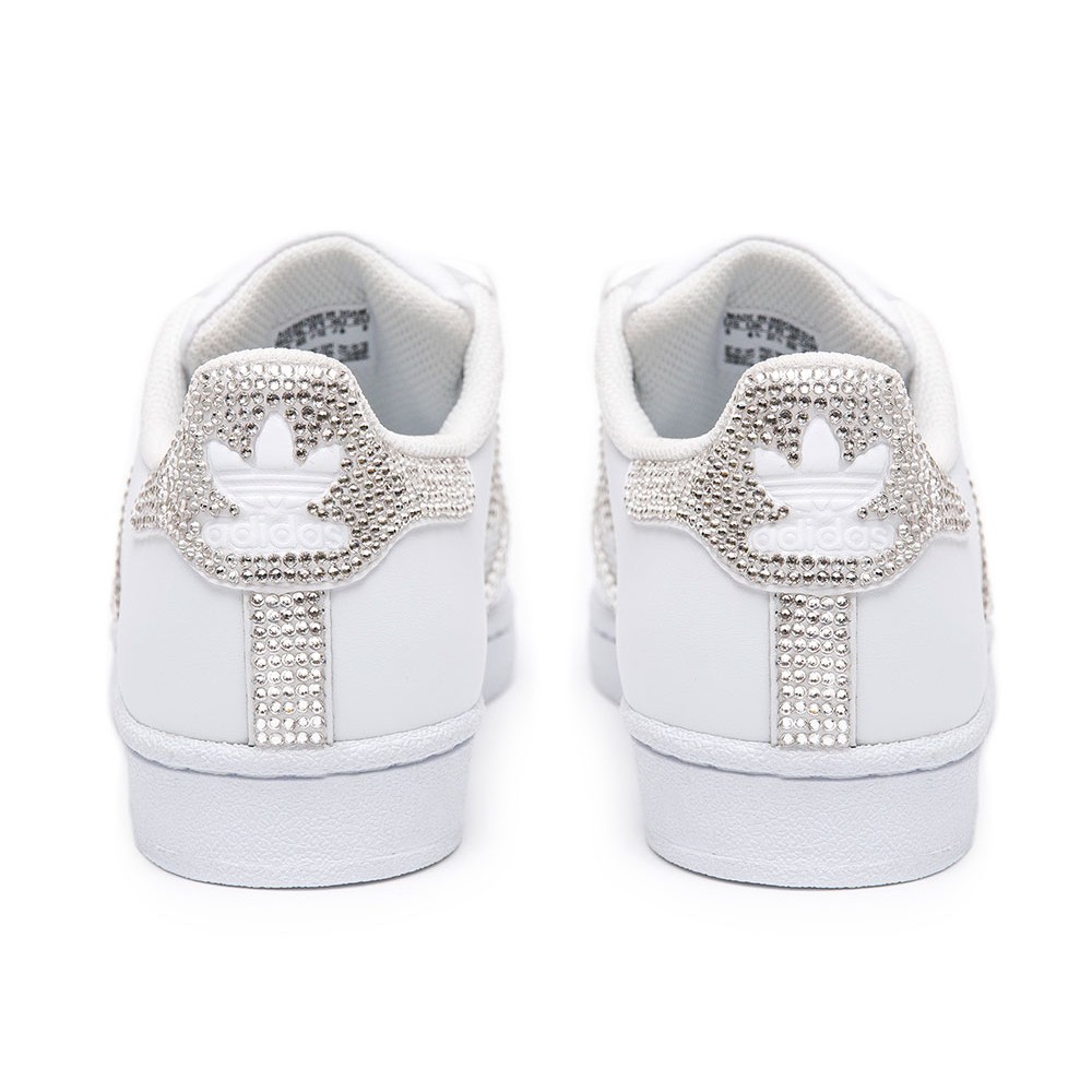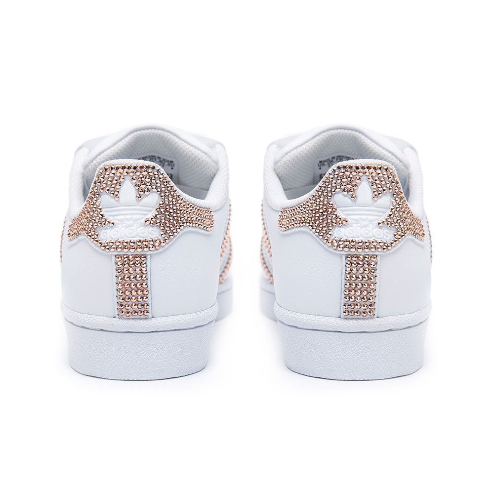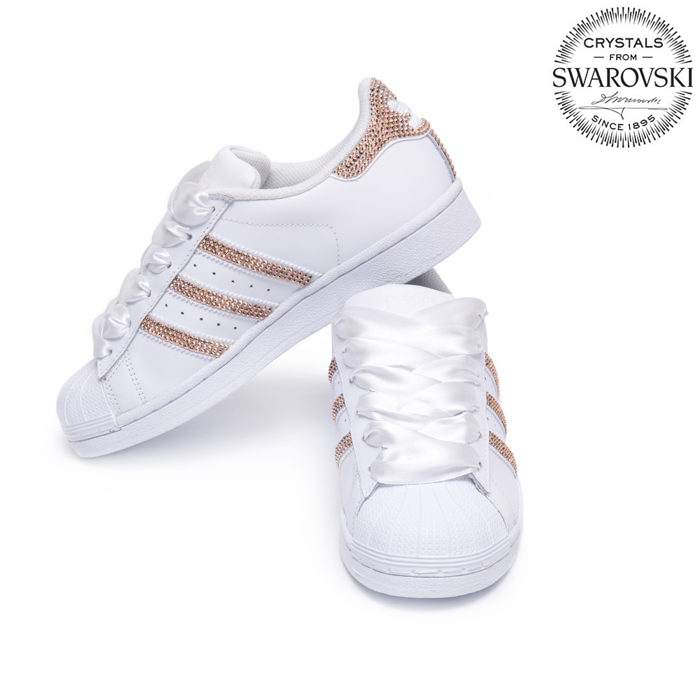 Je něco lepší než klasika Adidas Superstar? Myslíme, že ano a jsou to právě Adidas Superstar vyzdobené jedinečnými a vzácnými křišťály Swarovski podle tvého výběru. Kultovní bílé SuperStar jsme se rozhodli ještě více zhodnotit. Řešením je Adidas Superstar Swarovski II White, kde jsme spojili kvalitu ikonických Superstar a ruční výzdobu tří pruhů spolu s emblémem Adidas na patě. Tyto můžeme podle tvé požadavky vyzdobit třemi různými odstíny křišťálů od Swarovského. Může to být růžové zlato, stříbro nebo “rajské svetlo”. Výběr je na tobě.