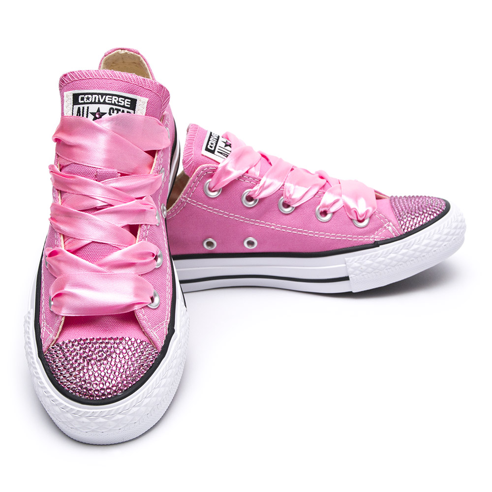Růžové nízké All Star ” conversky ” jsou mňamka, ale když se ještě posypou krystaly, je z nich opravdu módní lahůdka. Kultovní značku Converse nosí vlivné baby i rockové hvězdy, ale jen málokdo je má v takové vymakaný bling-bling verzi.