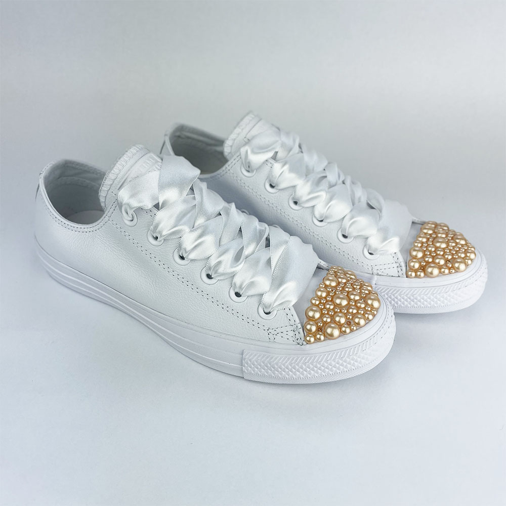 Nekonečný a nestárnoucí design těchto oblíbených tenisek vám nyní přinášíme v exkluzivním provedení se zlatými voskovanými perlami.