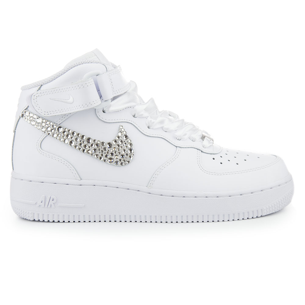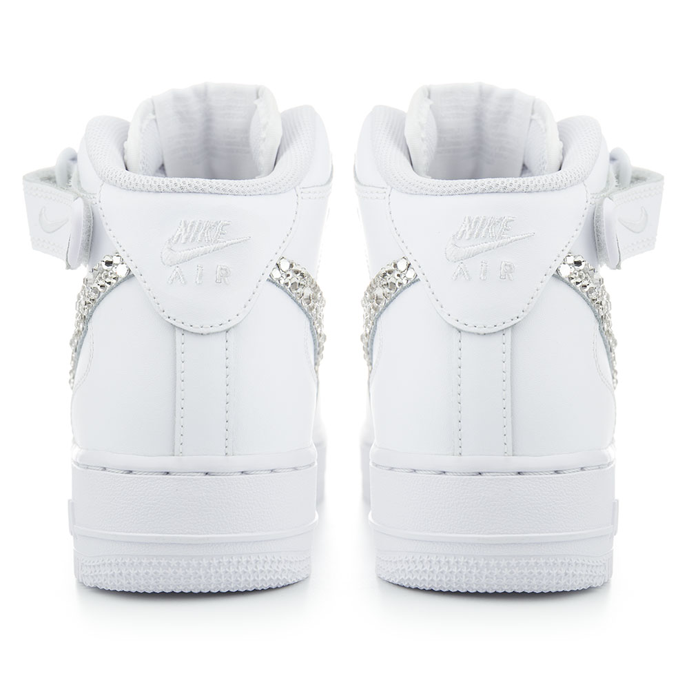 Čistota symbolizovaná třpytem krystalů, i tak by se dal popsat design těchto unikátních tenisek. Kompletně bílé provedení tenisek Nike Air Force 1 pro tebe zkombinujeme s ruční výzdobou loga Nike. Tak se z každého páru tenisek stává výjimečný kousek. Zářivé krystaly vytvářejí unikátní výzdobu “dýmky”, takže každý pár je unikát. Zároveň kombinace čistě bílých tenisek s třpytivým logem Nike symbolizuje nejen čistotu, ale i dobro či nevinnost, takže se může stát vhodným dárkem pro blízkého.
